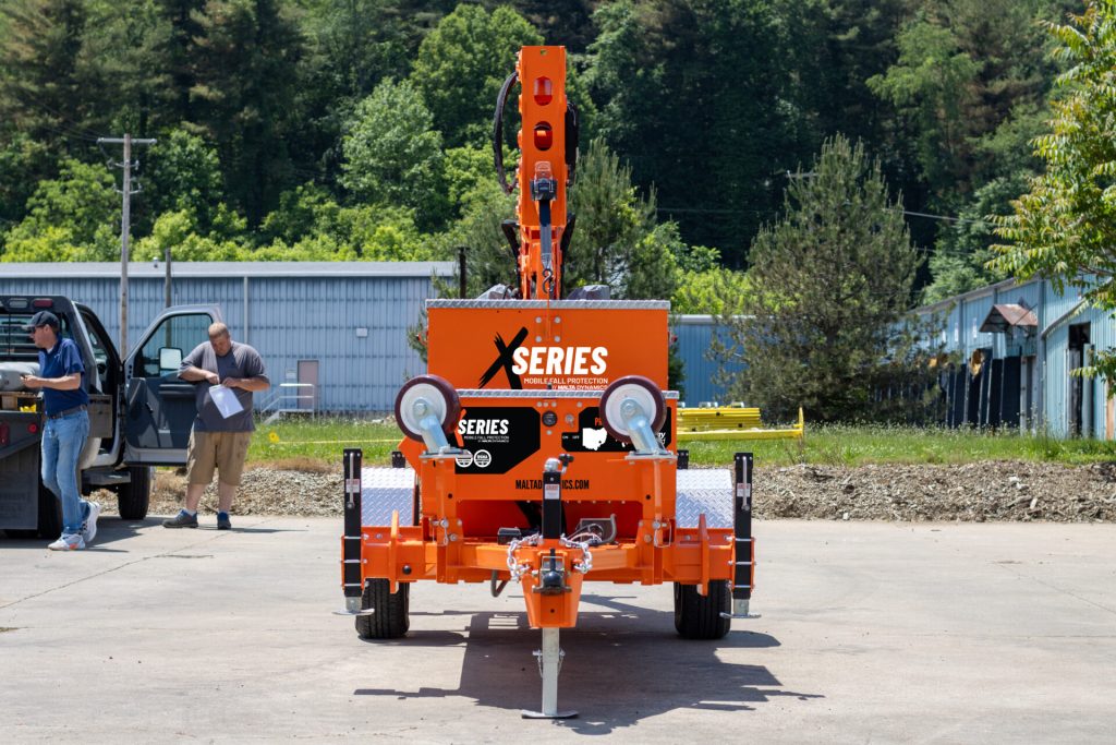Falls are one of the most common causes of severe workplace injuries and death, but in many industries installing permanent fall protection mechanisms may not be possible or practical. We offer an XSERIES portable fall protection system that can protect your workers by creating an anchorage point in the air to hold up to three workers at heights up to 45′. This system allows you to comply with OSHA regulations and ANSI z requirements and increase workplace safety.